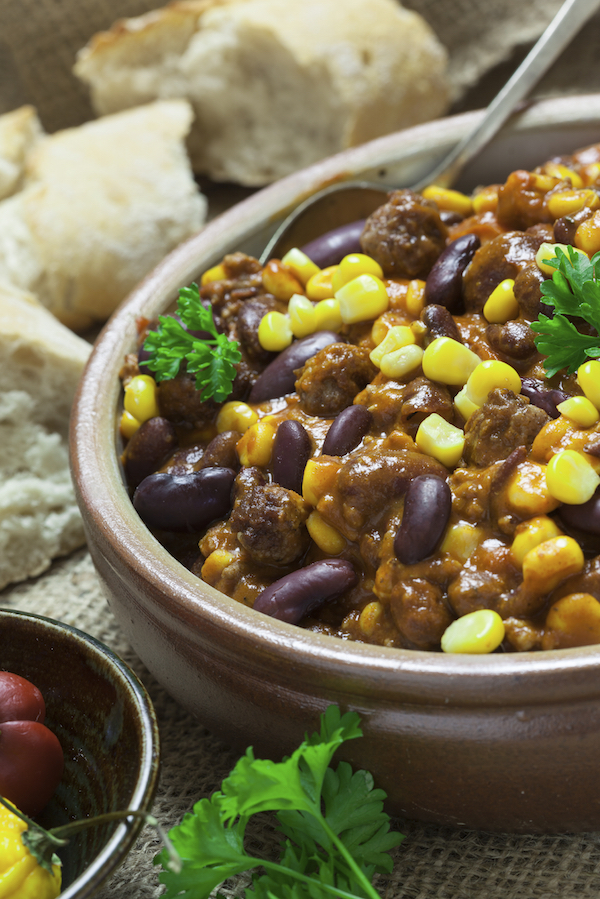 3. Ladle over rice or pasta. Top with shredded cheese, taco chips, jalapeno peppers and/or chopped fresh onion. Add crumbled tofu, or leftover shredded chicken or beef. Endless possibilities!