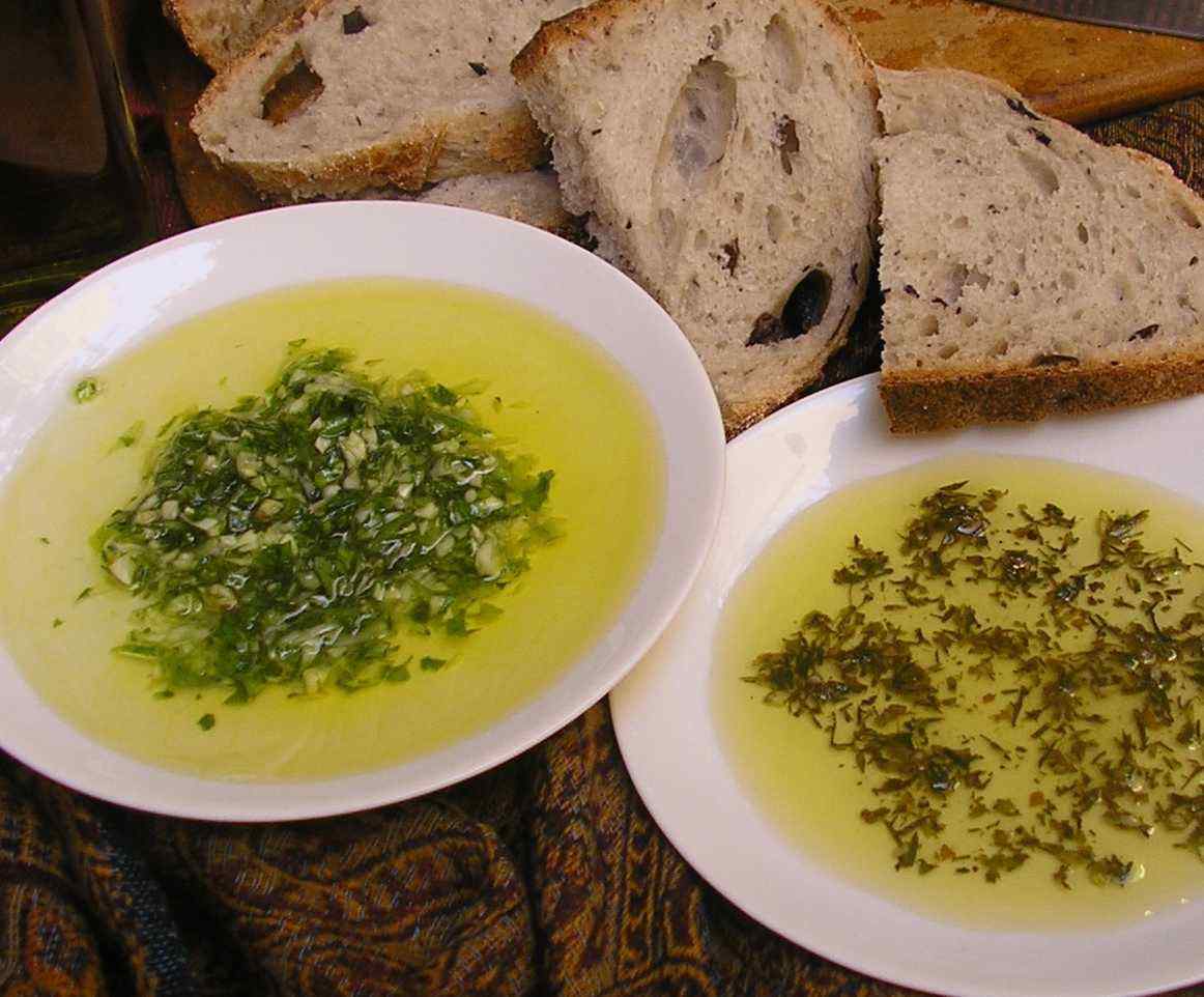 These particular tzimmerim are nestled on the side of a hill on a family farm with a wonderful view of the valleys below. Originally owned by a real Israeli pioneer and bequeathed to his four sons, the farm is flourishing with orchards, vineyards, cattle and a new winery. We drove through orchards of pear, apple, nectarine, pomegranate, apricot, cherry and olive trees in varying stages of production, many heavy the promise of their fruits. The first morning we awoke to a message from Hillel, our host/farmer, that we could help ourselves to as many cherries as we could carry, as the trees were anxious to be picked. (next column) What better time to bring out the olive oil than Chanukah? "Shemen Tov" and an herb mix for olive oil that also seasons chicken, fish and salad dressings.