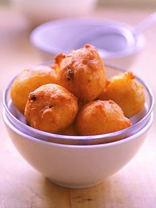 Since my mom made sure the food in our home was on the healthy side and a definite no-fry zone, it was always an exciting treat when my grandmother came over to make burmuelos, warm, crispy, fluffy, free-form doughnuts. Bumbles (a.k.a. burmuelos) are a tradition that escaped with my ancestors, exiled from Spain in 1492, traveled through Italy and on to Turkey, to settle firmly into our family holiday recipe repertoire. |